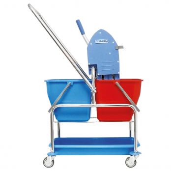 Úklidový vozík typu Clarol ve zvýšeném ergonomickém provedení. Skládá se z odolného chromovaného rámu, na kterém jsou uložena dvě vědra 17 litrů, ždímač, vanička, kovová rukojeť. Prostor pod vědry je vybaven vaničkou 60x18 cm, kterou lze využít pro uložení úklidových pomůcek, nebo na odkládání sáčků s odpadem. Vozík je možno doplnit širokou škálou doplňků upevňovaných na rám i na vodítko: